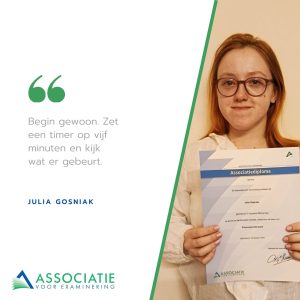 De grootste uitdaging was het vinden van tijd voor alles. Maar met een goede planning lukte het. Een tip die ik wil meegeven: begin gewoon. Als het zwaar voelt, zet een timer op vijf minuten en leer in die tijd. Daarna mag je stoppen. Meestal ga je toch langer door. Dat hielp mij op momenten van vermoeidheid of als de motivatie ontbrak.